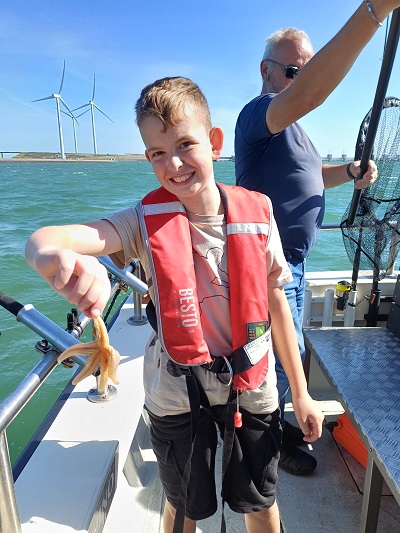 Rond 14:30 uur gaf de schipper aan dat iedereen binnen kon gaan draaien en dat de visdag erop zat. Niet veel later lagen we weer in de sluis om naar de Oosterschelde te schutten en richting de thuishaven te varen waar alle ouders weer stonden te wachten. Moe maar voldaan lagen we om 15:15 uur aan de steiger.