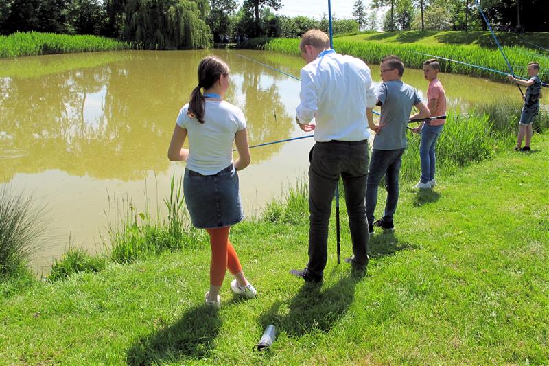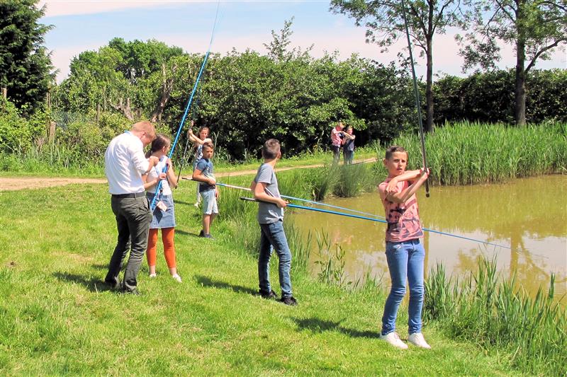 Visles op 22 mei 2017 in de Zwarte Weel in Kapelle. 23 leerlingen van een klas van de basisschool uit Yerseke maakten kennis met het vissen op zoetwater. De Visles werd verzorgd door Jack Gelok samen met een aantal vrijwilligers van de EGHV.